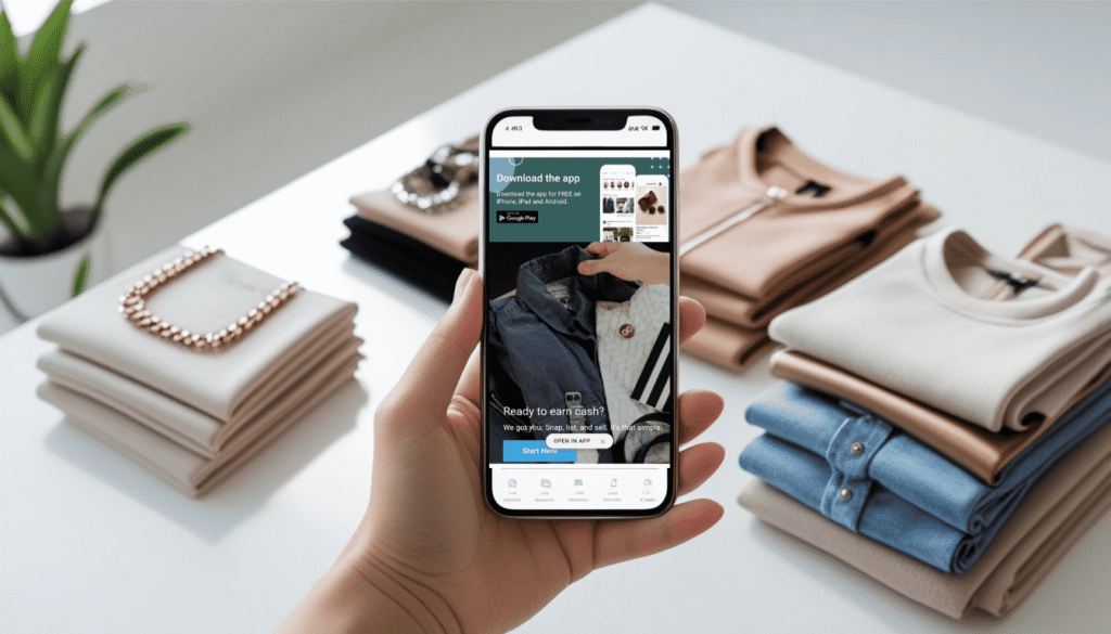 Poshmark is one of the most popular resale apps for clothes, especially for fashion brands that want good exposure. Poshmark charges a flat fee — often around 20% on higher-priced items — but many sellers find the trade‑off worth it because of large buyer activity. You just have to list your items, share with buyers, and start earning. You can get the app from App Store/Play Store.
