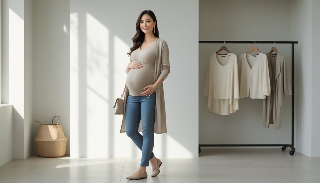 In simple words, minimalist maternity fashion focuses on quality over quantity. You pick a few versatile pieces that mix and match easily according to your body changes, instead of buying dozens of outfits you’ll only wear for a few months. This not only saves money but also keeps you stress-free.