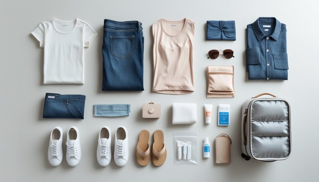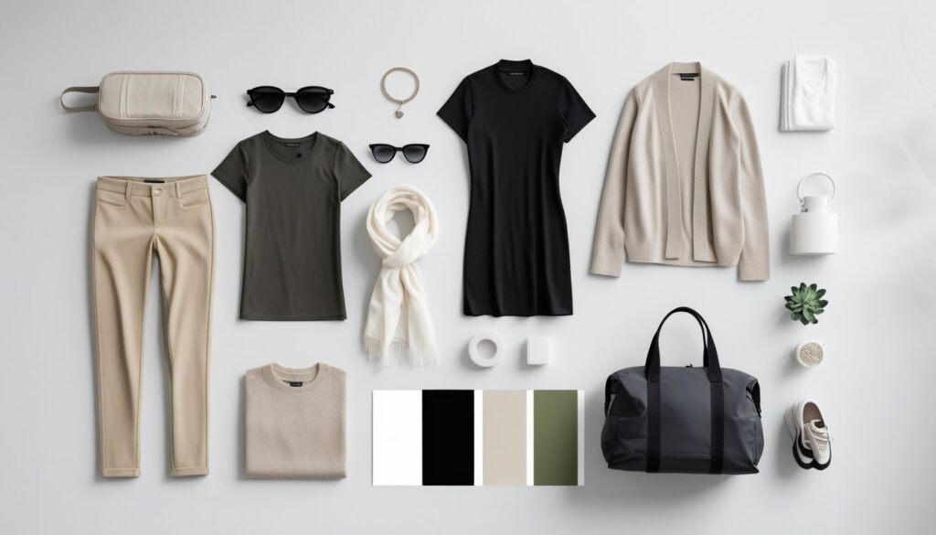 A minimalist travel wardrobe simply means packing fewer clothes that you can wear in more ways. It’s not about owning the least amount possible, but about choosing smart pieces that mix, match, and work for different occasions. The goal is to look stylish and feel comfortable without dragging an entire closet around the world.