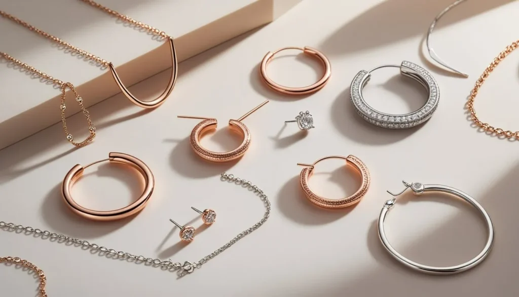 • Stick to minimalist designs: thin hoops, delicate chains, or simple studs — to keep your overall look refined and balanced.