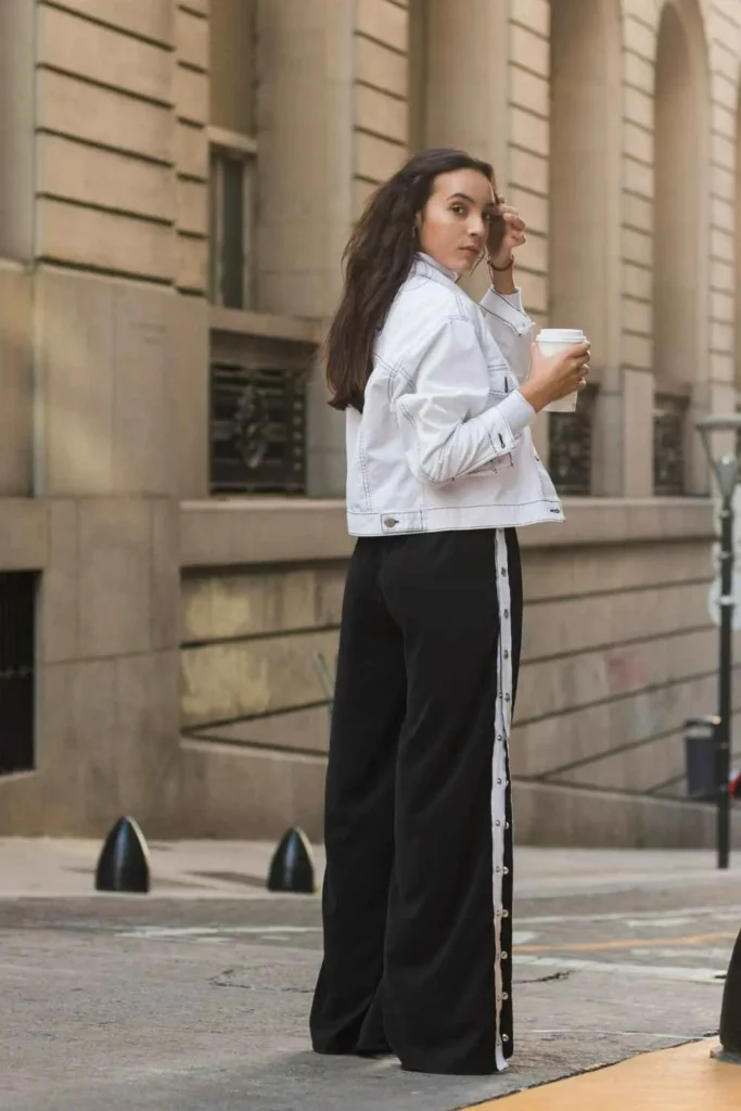A white-on-white outfit gives a fresh, clean, and professional appearance. Try a white cotton blouse with off-white linen trousers — light, breathable, and graceful. Pair with nude flats or beige loafers for a soft finish that works perfectly in any season.